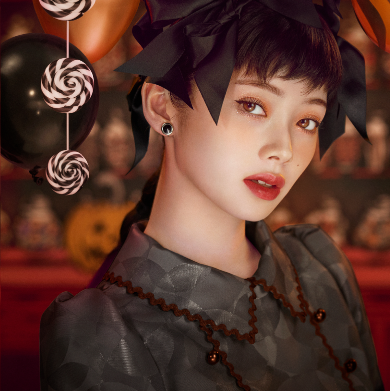 ハロウィンシーズンの夜にだけ開く特別なお菓子屋さんを舞台に、双子の看板店員の女の子が商品をおすすめするストーリーを展開。物語性を大切にしながら、中味色やぱっちりとした目元の仕上がりなどもしっかり訴求。