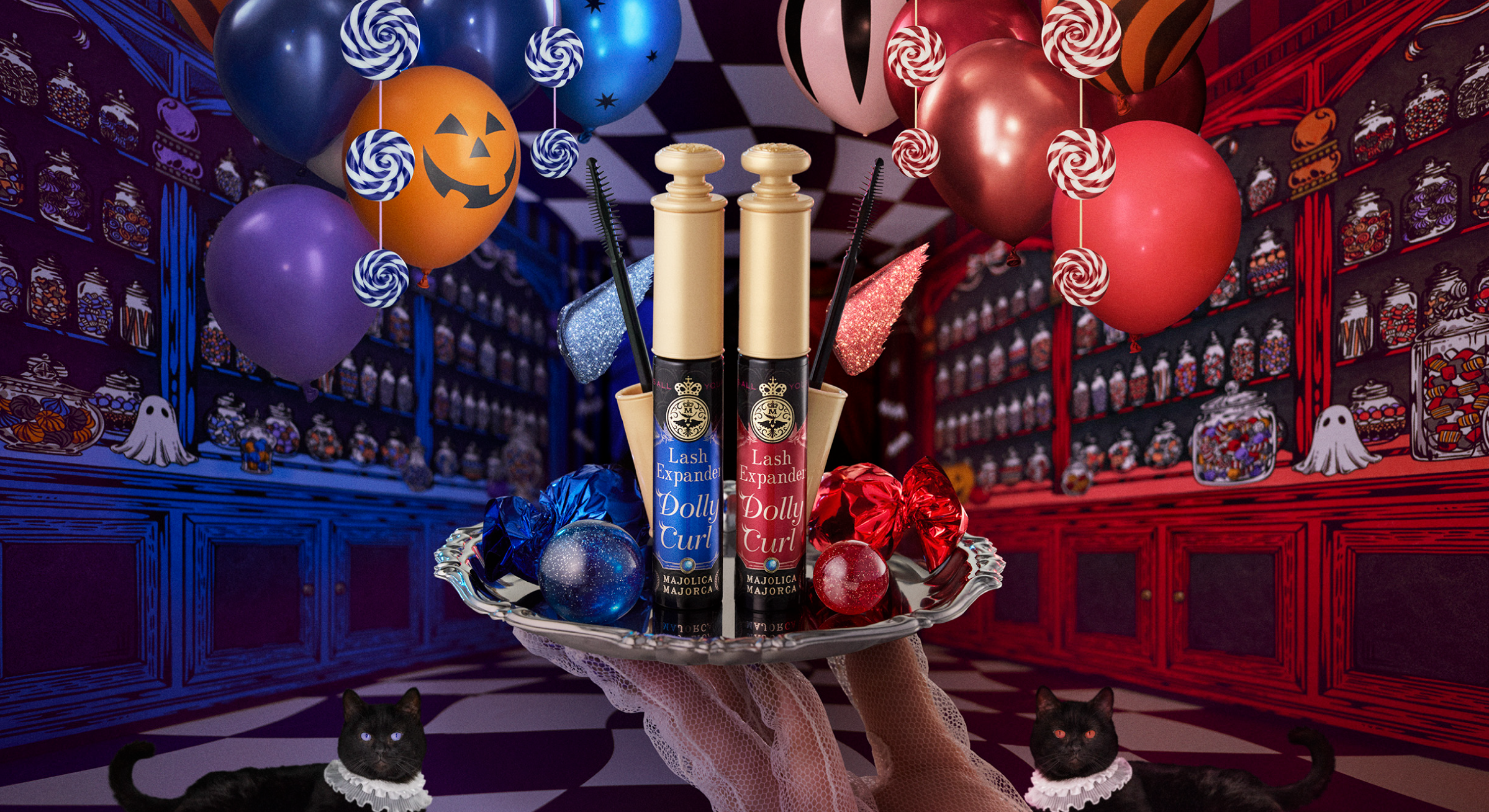 日本の若年層向けメーキャップブランド・マジョリカマジョルカから、2025 年9 月に発売されたハロウィン限定のカラーマスカラ。中味色のラメ感のあるキャンディーカラーを魅力的に伝えるため、「闇夜に光るお菓子屋さん」をテーマに設定。プロダクトデザインからコミュニケーションに至るまで、一貫性のあるストーリーとデザインを展開しました。